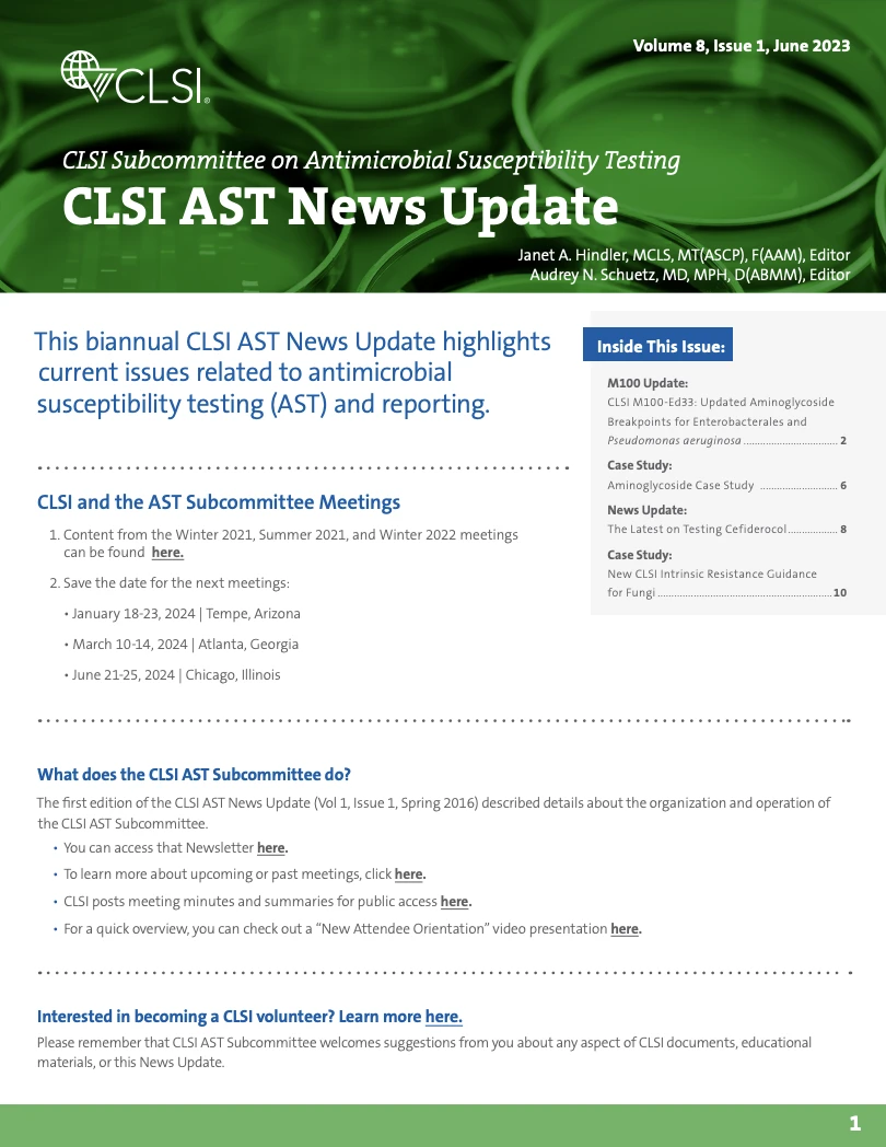 3 CLSI. Performance Standards for Antimicrobial Susceptibility Testing. 33rd ed. CLSI supplement M100. Wayne, PA: Clinical and Laboratory Standards Institute; 2023. Access here.