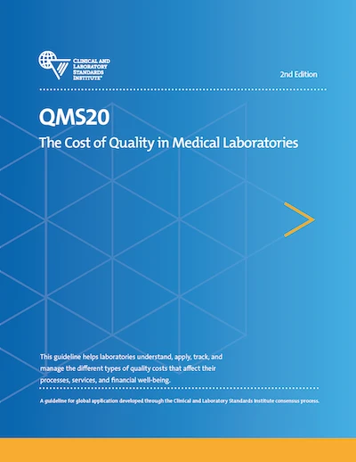 The new edition of the guideline CLSI QMS20—The Cost of Quality in Medical Laboratories describes quality costs in laboratory expenditures (including prevention, appraisal, internal failure, and external failure costs) and suggests ways that laboratories can apply this information to continually improve their processes, services, and financial performance.