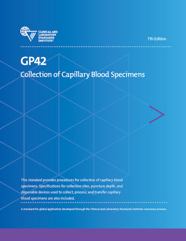 The latest edition of CLSI GP42 —Collection of Capillary Blood Specimens provides guidance for proper capillary blood collection procedures and processes to ensure the safety of the patient as well as the health care professional responsible for blood specimen collections. Maintaining a standardized collection procedure will help reduce preexamination errors that contribute to inaccurate test results and can result in patient harm.