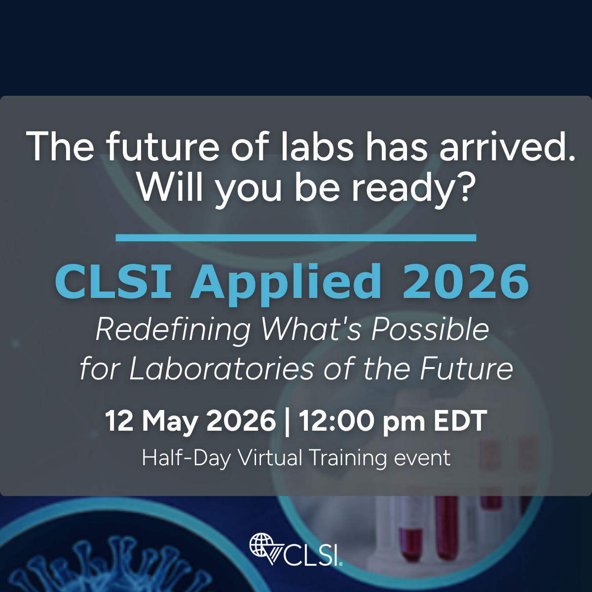 Berwyn, PA — The Clinical and Laboratory Standards Institute (CLSI) announces CLSI Applied 2026: Redefining What’s Possible for Laboratories of the Future, a premier virtual learning event designed to prepare laboratories for emerging technologies, new regulatory landscapes, and the next generation of diagnostic innovation. The half-day event will take place on Tuesday, 12 May 2026 beginning at 12:00 pm EST.