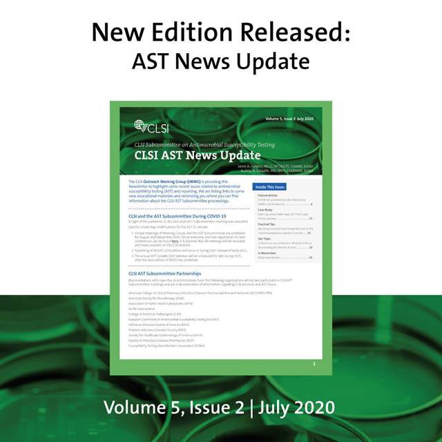 This article came from AST News Update, Volume 5, Issue 2 – July 2020 which is produced by the CLSI Outreach Working Group (ORWG). The ORWG is part of the CLSI Subcommittee on Antimicrobial Susceptibility Testing (AST) and was established in 2015. The formation of the working group originated in a desire to efficiently convey information regarding contemporary AST practices, recommendations, and resources to the clinical microbiology community. They welcome suggestions from you about any aspect of CLSI documents, educational materials, or their Newsletters.