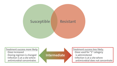 - Acknowledge that at some anatomical sites, the antimicrobial is more concentrated. In this case, “I” means that if the infection is restricted to that site, success is likely (eg, urinary tract infections for many antimicrobials that are renally excreted).