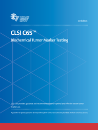 CLSI C65—Biochemical Tumor Marker Testing discusses preexamination, examination, and postexamination guidance as it relates to 10 commonly measured soluble biochemical tumor markers that circulate in blood and are usually measured in serum or plasma. Preexamination guidance is provided in relation to appropriate test selection for diagnosed cancer patients as well as those with suspected cancer, and also considers patient preparation, specimen collection and handling, and storage and transportation. CLSI C65 provides recommendations for method selection in the examination phase, implementation of internal and external QC (or proficiency testing) procedures, and identification of possible clinically relevant influences and other confounding factors that might affect results. Postexamination recommendations for tumor marker reporting are also presented. These include specifying the method used, cumulating serial results, and advising on clinical decision limits and clinically significant changes in tumor marker concentration.